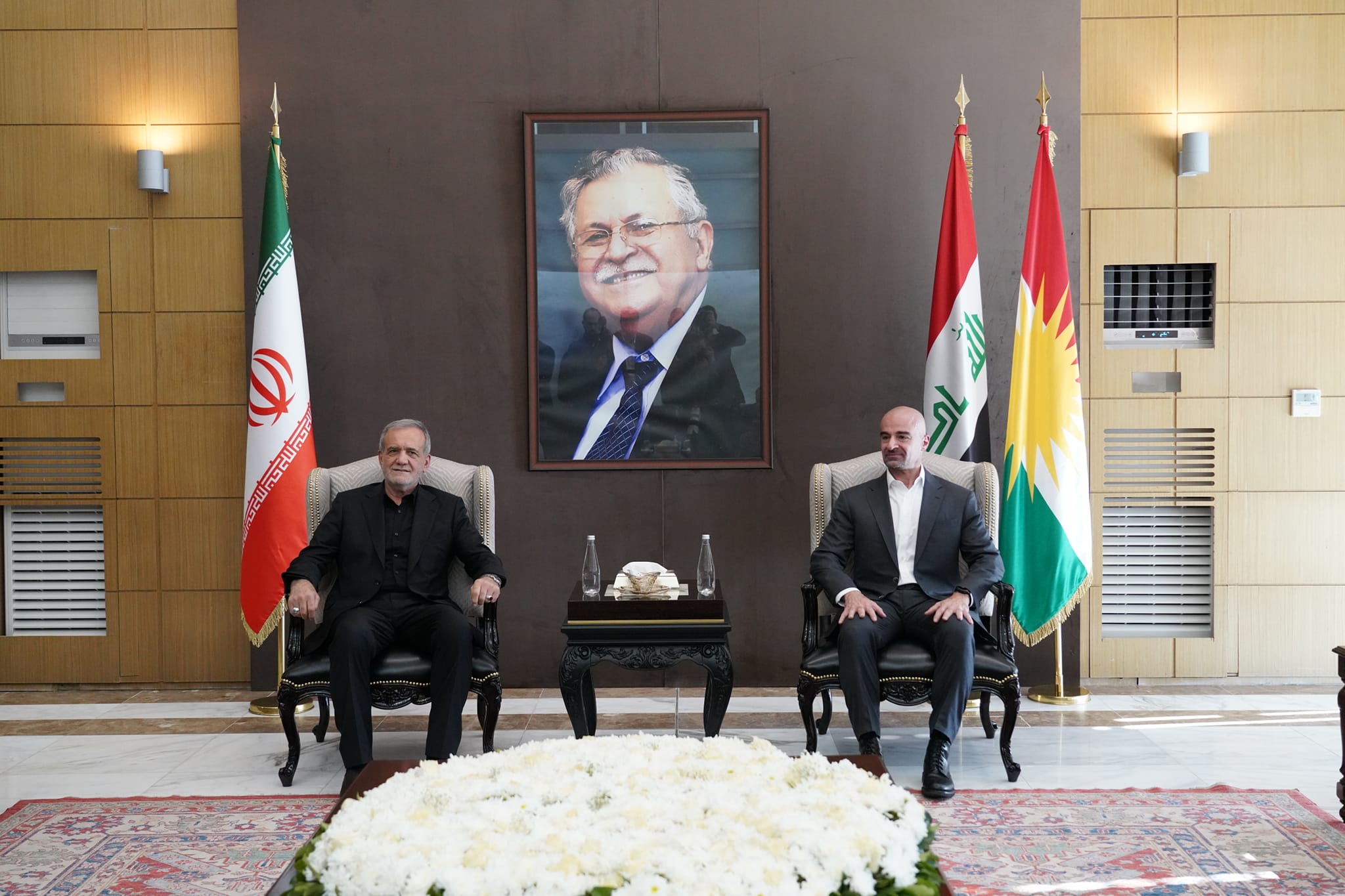 آقای دکتر پزشکیان رئیس جمهور اسلامی ایران روز پنجشنبه ۲۲ شهریور ۱۴۰۳ در راس هیاتی بلند پایه به سلیمانیه سفر کرد و در فرودگاه این شهر مورد استقبال سرکنسول جمهوری اسلامی ایران در سلیمانیه، بافل طالبانی رئیس حزب اتحادیه میهنی کردستان عراق، قباد طالبانی معاون نخست وزیر اقلیم کردستان و جمعی از مقامات ارشد دولتی و حزبی قرار گرفت. رئیس جمهور ایران ابتدا بر سر مقبره مرحوم جلال طالبانی حاضر و با اهدای تاج گل به رئیس جمهور فقید عراق ادای احترام کرد. ملاقات با مقامات ارشد حزب اتحادیه میهنی کردستان برنامه بعدی دکتر پزشکیان و هیات عالیرتبه همراه بود. دو طرف در این ملاقات در خصوص طیفی از موضوعات اقتصادی، سیاسی، امنیتی و فرهنگی تبادل نظر و آمادگی خود را برای افزایش مناسبت اعلام کردند.