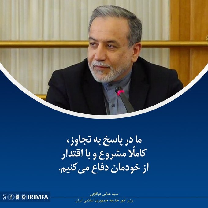 پیام سید عباس عراقچی وزیر امور خارجه در خصوص تجاوز رژیم صهیونیستی به ایران